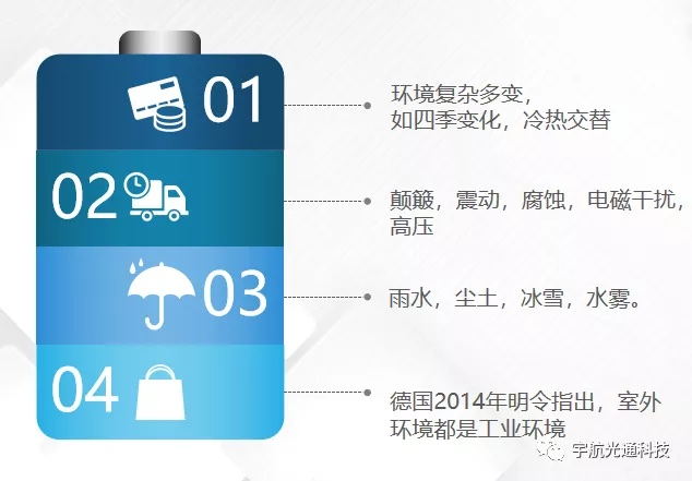 ◑德国于2014年明文规定室外环境必须用工业级交换机,来减少售后人工成本,稳定基础建设