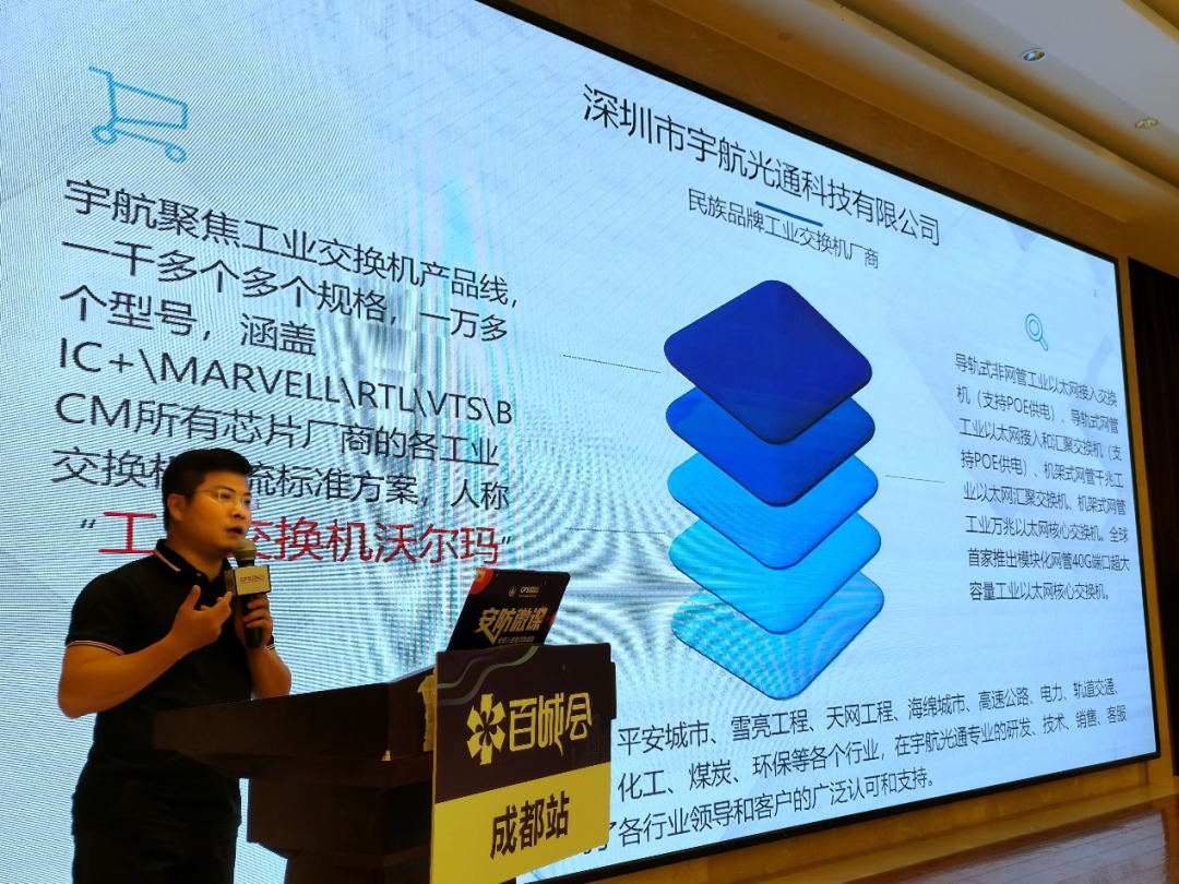 本次百城会的现汇聚了当地的集成商、工程商,在展台样机前,各位领导和安防同仁对宇航工业交换机表示出浓厚的兴趣。防雷、防尘以及高低温都是大家关注的热点,可靠性、稳定性及质保也是大家关注的焦点。热点和焦点的来源是能解决痛点,只有解决了客户的问题才能换取rmb, 宇航工业交换机让客户安心,让客户放心,我们始终在推广工业交换机的道路上任重道远,我们也真心希望大家一起加入宇航工业交换机的推广之路。