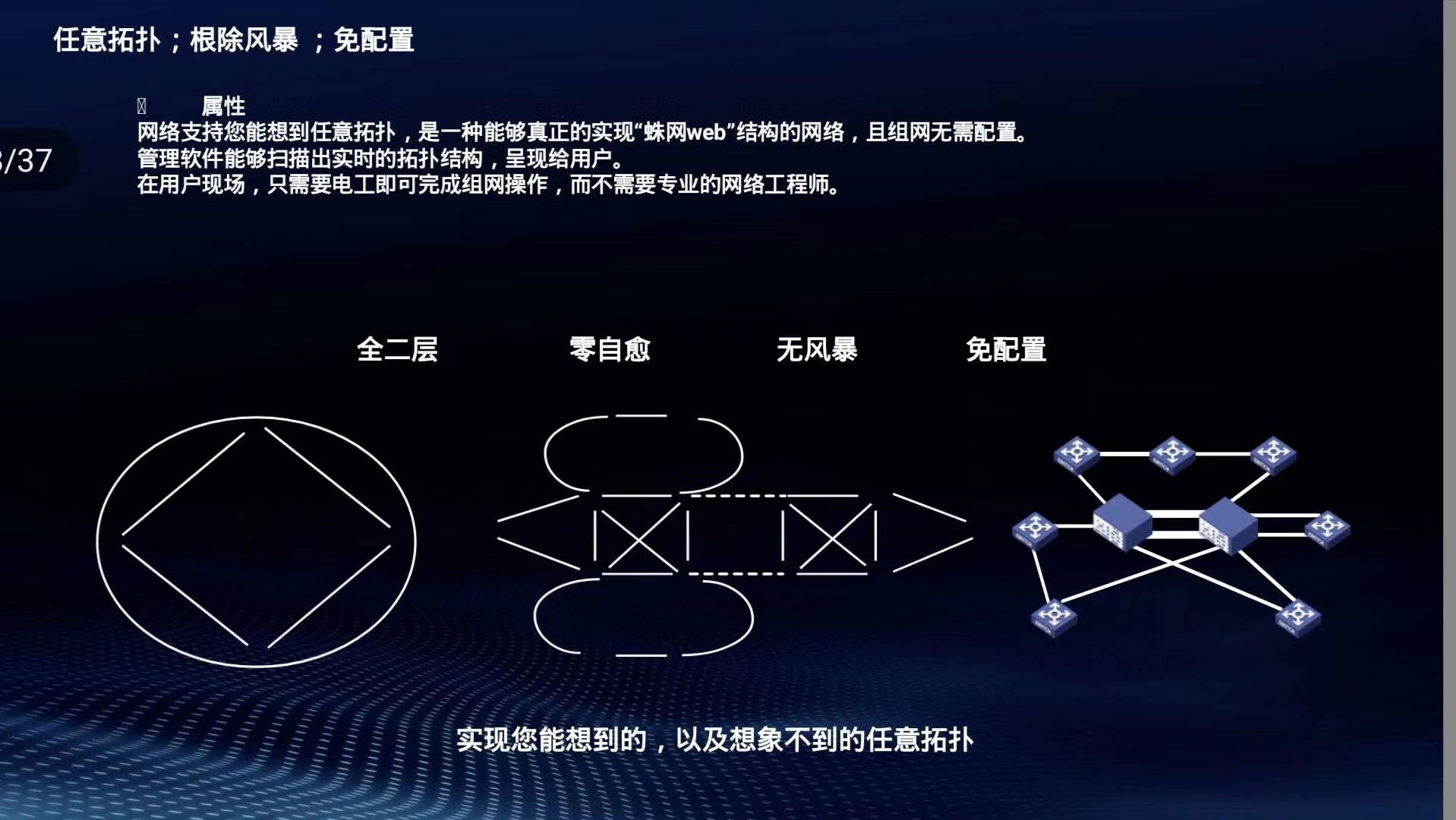 宇航的下一代工业交换机产品,目前已经实现了可确定性网络、骨干网络零配置、网络自愈、多路径传输、任性组网、彻底根除网络风暴等技术。下一代技术比西方巨头在研的tsn技术更先进,完成了从“抄”西方到“超”西方的转变。