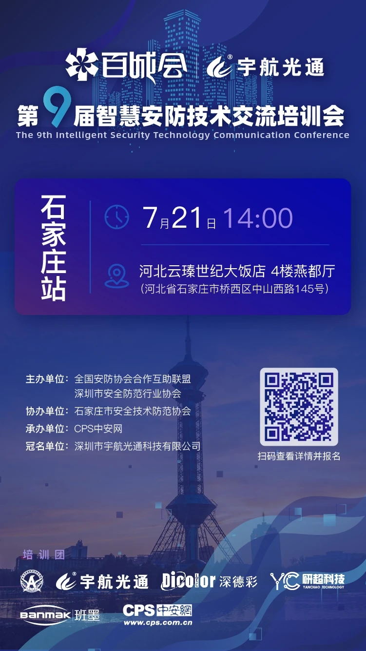 继深圳站后,由全国安防协会合作互助联盟、深圳市安全防范行业协会主办,cps中安网承办、全国各站点的技防单位或协会单位支持和协办,宇航光通冠名的2020年第九届“智慧安防技术交流培训会”(百城会)陆续在厦门、南昌、合肥、济南圆满举办。